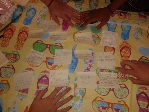I challenged our Daughters of the King girls this past week to start taking small steps to live beyond themselves. I gave them a pack of post-it notes and a pen and we started writing anonymous notes of encouragement. I challenged them to keep it with them and start putting them up in public places. School, bathrooms, restaurants.. (Idea found at operationbeautiful.com)
