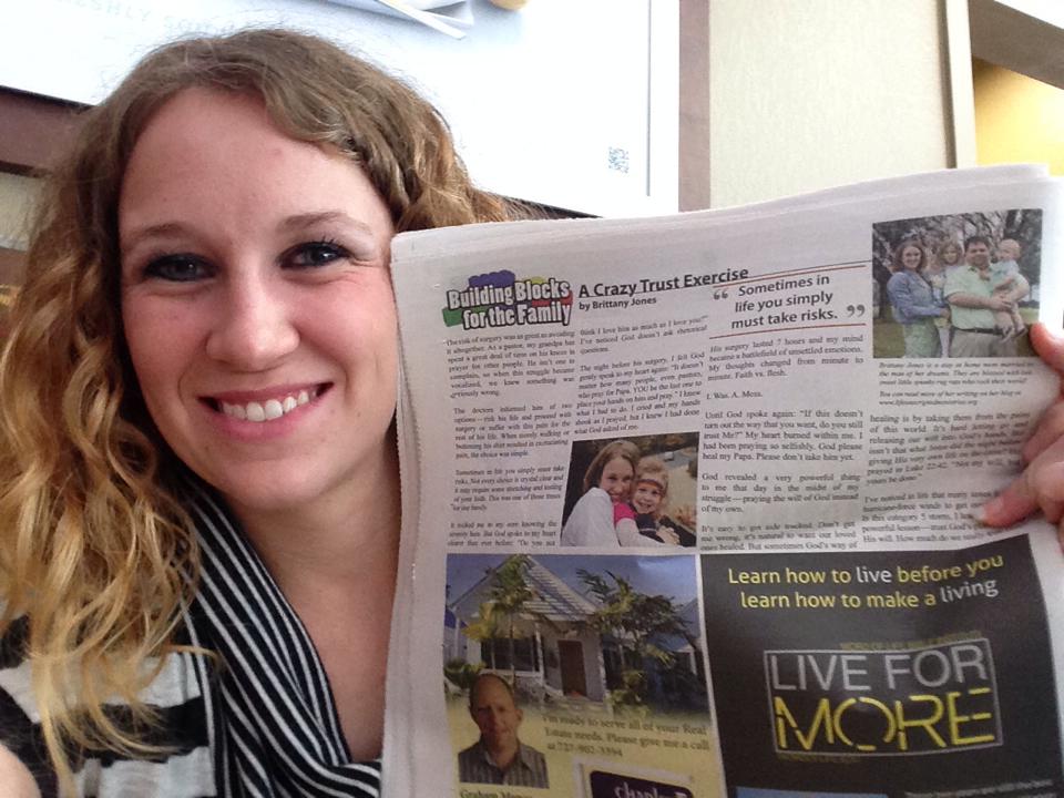 God birthed the love of writing in me at a very young age. I’ve always loved it and frequently complimented on my knack for it. I don’t say that to brag, please hear my heart past these squealing little shrieks coming from the inside. My very first article was just published in a local newspaper called Gulf Coast Family and it stretches across Pinellas and Hillsborough County. I’m not even sure how to spell my name today. Or even if that matters at the moment.