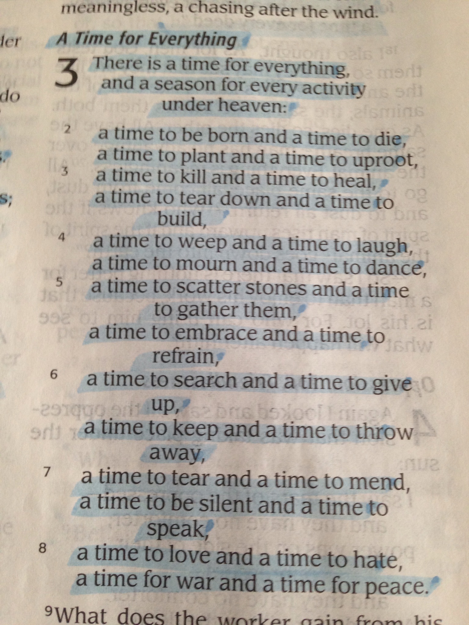 I want to leave you with this passage from Ecclesiastes 3:1-8. You are loved. We can do this together!