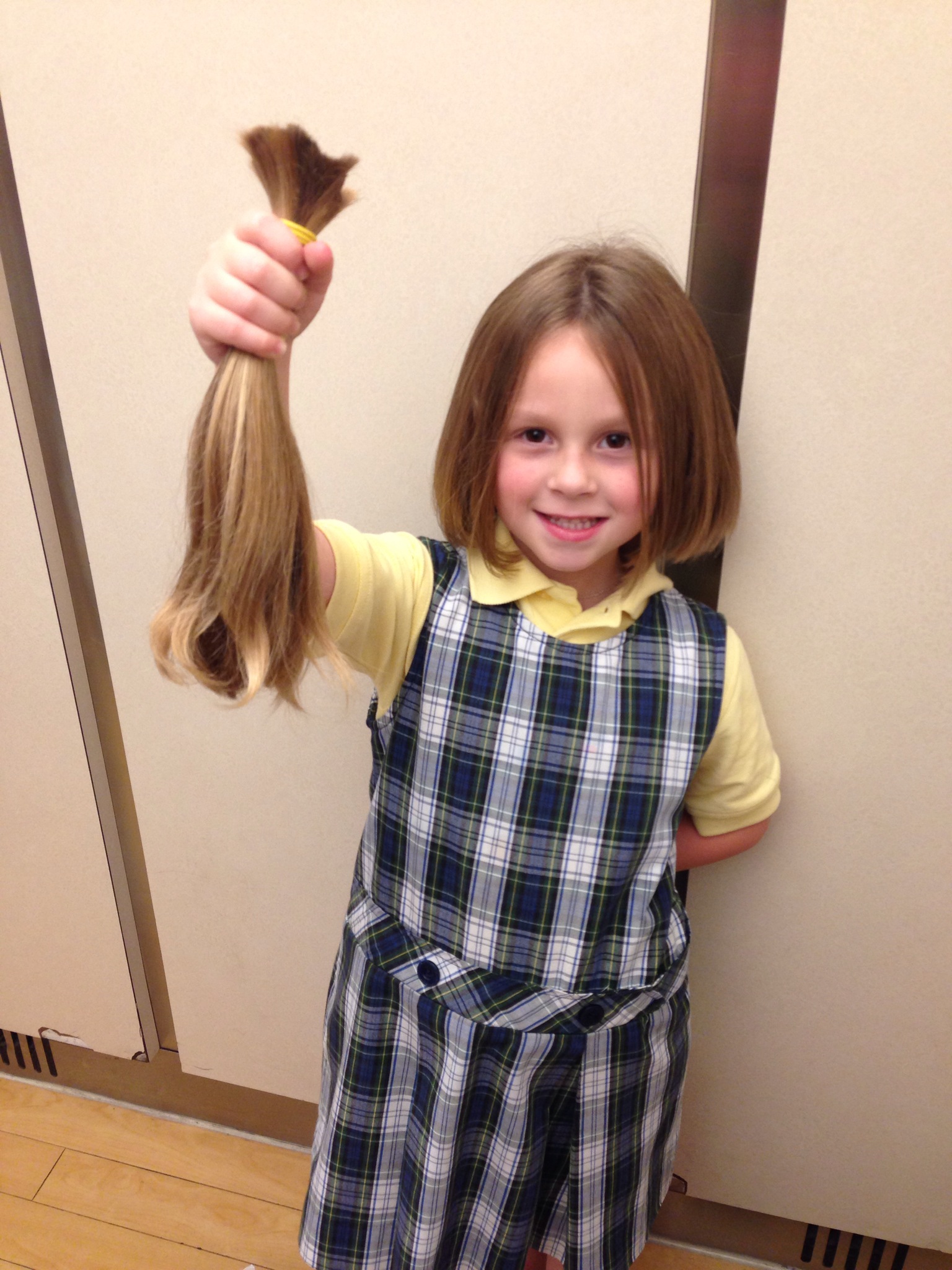 10 inches. 25.4 centimeters of beautiful, blonde flowing locks of love. And she was ready to part with it in a New York minute.