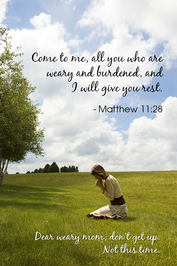 I walked into the house and checked my monitor. My three-year-old and one-year-old were still sleeping. Thank God. I let the tears fall freely and sank to the floor. Lord, I’m so worn out. It’s too much. I feel overwhelmed and alone. There is too much to do, so much pressing in on me. I don’t have enough energy or time or patience to be the mom my kids need. Maybe if I slept for a week uninterrupted, my brain would clear and I could think straight. My mind feels so cloudy and chaotic all the time, like I can’t complete my thoughts. I am at the end of my rope; I have nothing left to give. How do I get some rest? It’s not like someone else can be their mother!