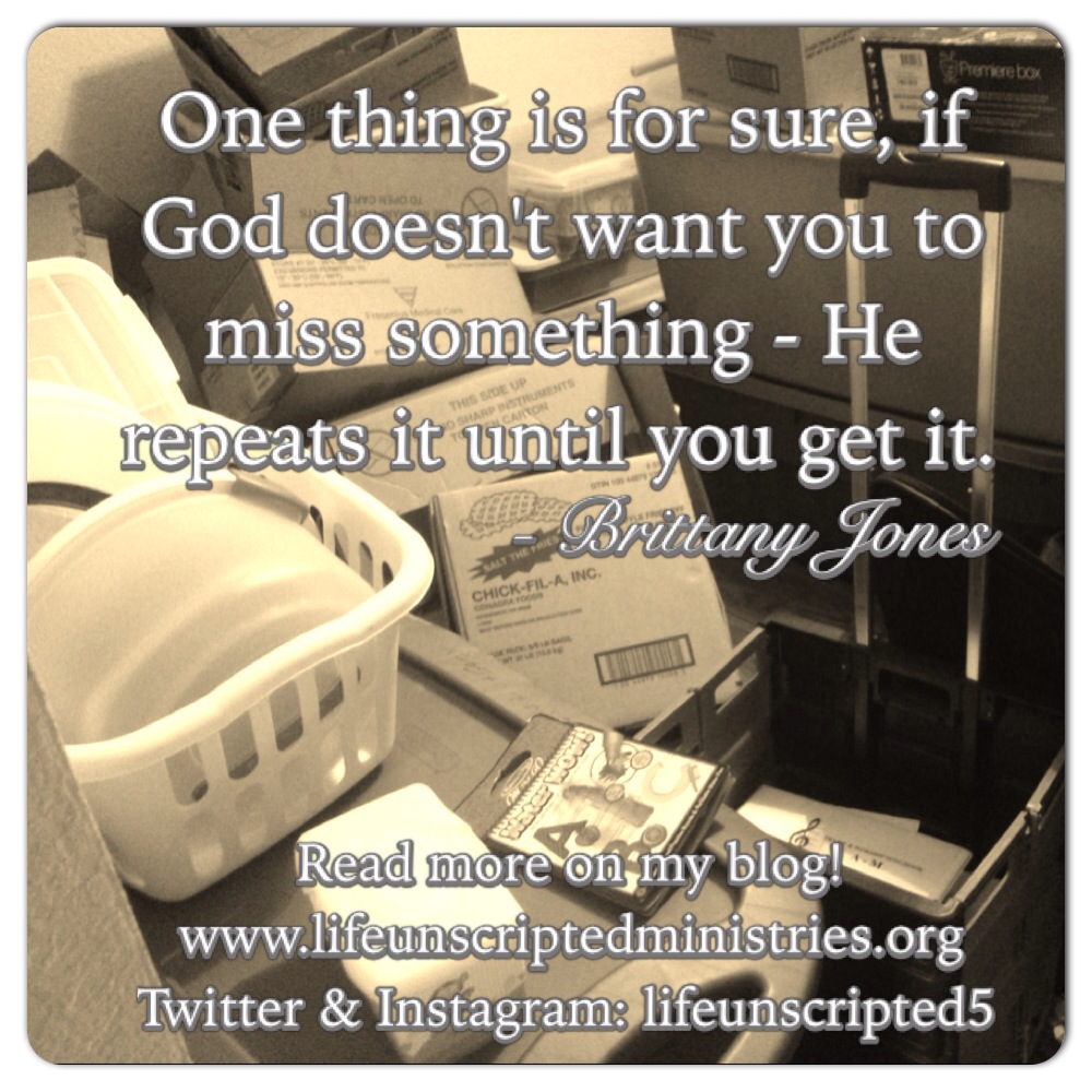 One thing is for sure, if God doesn’t want you to miss something – He repeats it until you get it.