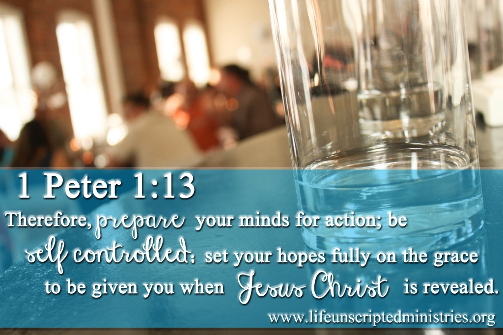 - Be prepared. Have self-control. Be holy & refuse to conform to the evil of this world. I’ve heard all my life we are living in the “last days” and boy do I believe it now. There is so much evil and perversity in this world; it’s scary. We as the body of Christ have got to be prepared. Stay in the Word and be holy. Have self-control and refuse to conform – no matter how hard the big ugly giants stare us coldly in the eyes. (vs. 13-16)