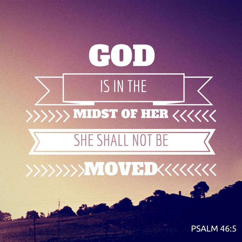Psalm 46:5 God is in the Midst of her, she shall not be moved God will help her right early [at the dawn of the morning].