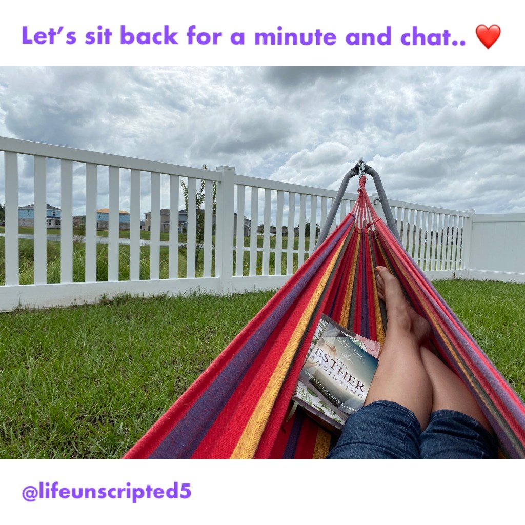 I pray that you find peace in today, wherever it finds you. Today, I made a few minutes to sneak outside while the littles were in school and relax in the hammock playing catchup on our small group bible study (we’d love to have you at Wisdom Seekers on FB! We’re studying Esther right now. It’s been awesome so far!). You have to make time for you, girl. You HAVE to. Or you won’t be any good for your people.